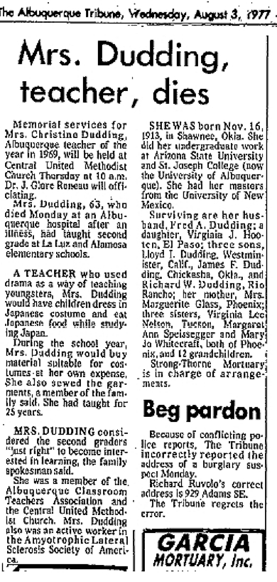 The Albuquerque Tribune Article, Wednesday, August 3, 1977