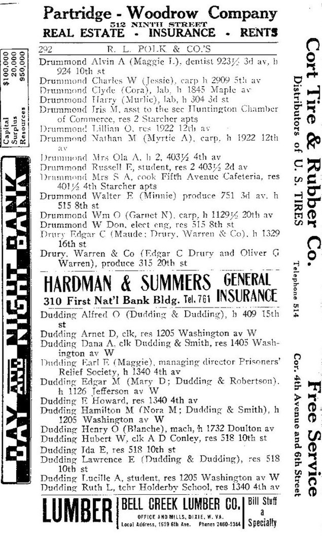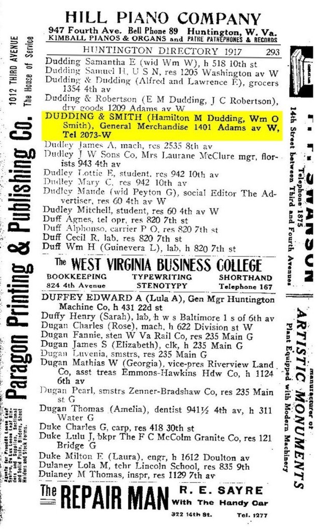 This record relates some of the events regarding the move of Ham and Nora from Huntington, West Virginia, to Arizona. In the early 1920's Ham and Nora owned and operated the H.M. Dudding General Merchandise Store in West Huntington, WV It was a prosperous business and provided well for the family. The store sold merchandise consisting of fabric, dry goods, women's clothes, shoes, and millinery. It was also a grocery store. Ham did not carry fresh meat in the grocery department. However, he did purchase meat from a butcher shop, -took meat orders, and delivered meat with other food or merchandise. Orders were taken phone or door to door and deliveries were made twice a day. Everyone did not have a phone so Arnett would walk a route and take orders every day. In the winter deliveries were made using a horse and sleigh. ![]() Sam served in the United States Navy during World War I. While serving on a submarine chaser ship, he developed tuberculosis. He received a medical discharge from the Navy and was given a pension of $75.00 a month. This was a good retirement income. At this time there was no medical cure for tuberculosis and no treatment other than a warm climate and rest. Sam and his wife, Mae, moved to Arizona because of his health problems.