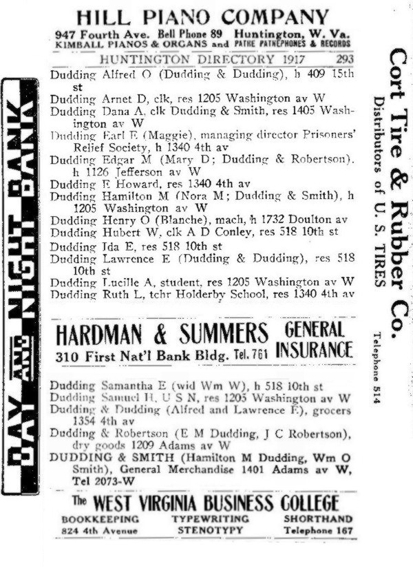 The above page was excerpted from the 1917 Huntington, WV City Directory pages 292 & 293.